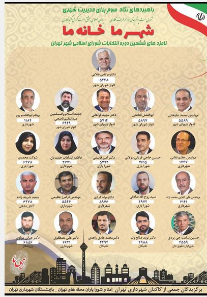 شهروندان گرانقدرتهرانی لیست حاضر درمیان لیست های متنوع دیگر ویژگی های برجسته وشاخصی دارد که همانا تبیین کننده نگاه وراه سومی است که نسخه نیل به شعار تهران شهر ما خانه ماست.