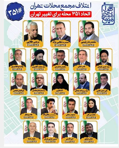 ثریا: از لیست "ائتلاف اتحاد ۳۵۱ محله برای تغییر تهران" رونمایی شد.