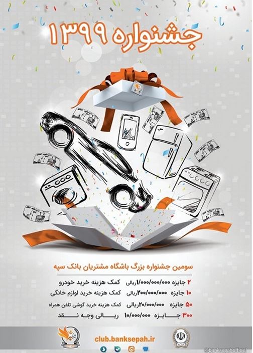 ثریا: باشگاه مشتریان بانک سپه سومین جشنواره خود را با عنوان جشنواره 1399 از تاریخ 1 آبانماه 1398 لغایت 31 فروردین ماه 1399 برگزار میکند.
